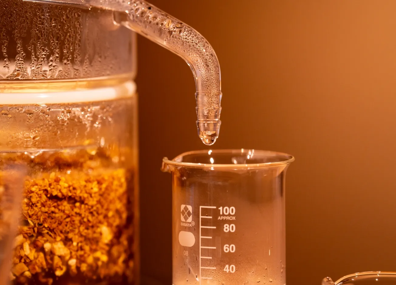 蒸溜の様子を間近で見ながら、香りが抽出される工程を体感します。